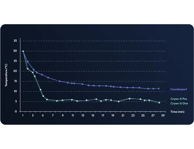 Cryon-X isn’t just another cold therapy device—it’s engineered for accuracy. Independent testing at 5°C shows that Cryon-X quickly reaches and maintains the target temperature, even in warmer conditions where other systems struggle.
