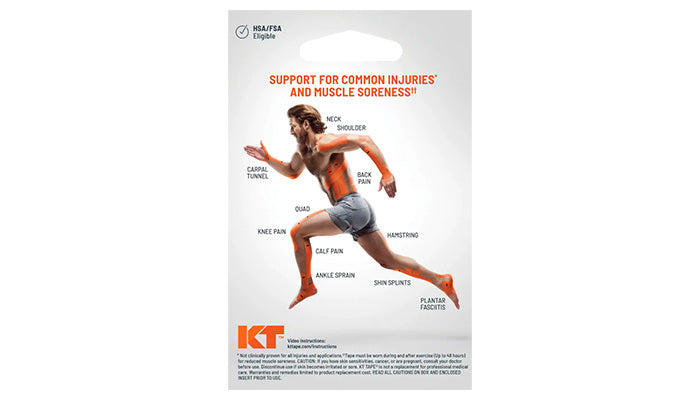 KT Tape can be applied to various areas of the body, including the knees, shoulders, back, ankles, elbows, and wrists. It provides targeted support and relief for muscles, joints, and tendons, helping to reduce pain, enhance stability, and support movement during activity and recovery.