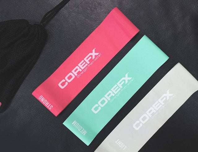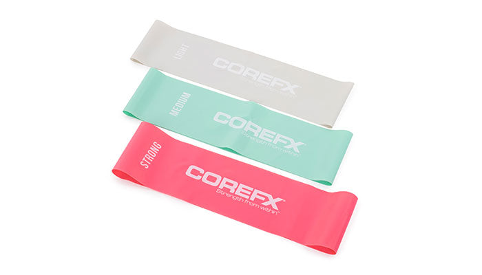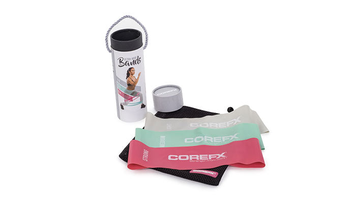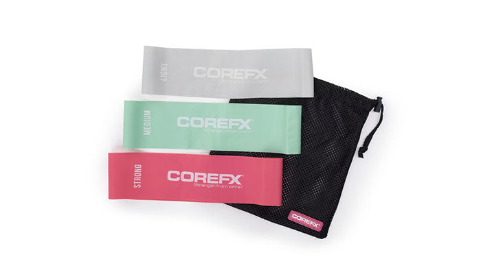 The COREFX Ultra-Wide Band Set includes three resistance loops—light, medium, and heavy—designed to support recovery, mobility, and strength training. Made for maximum comfort and stability, each band is ultra-wide to help reduce rolling or pinching during use. The set comes with a breathable mesh carry bag for easy storage and on-the-go training.